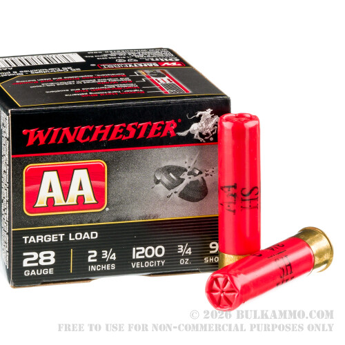 250 Rounds of 28ga Ammo by Winchester AA - 3/4 ounce #9 shot