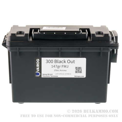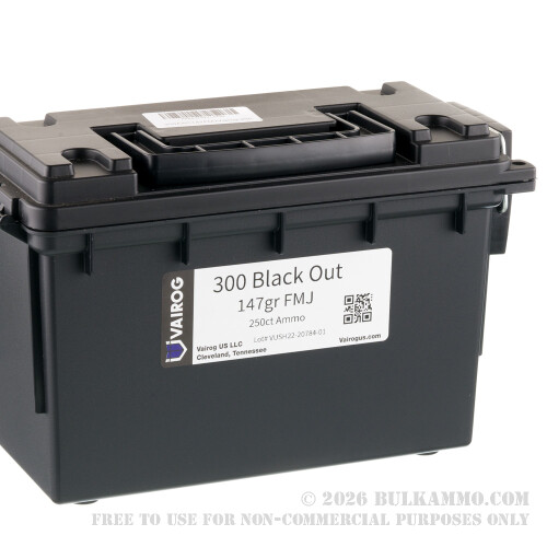 250 Rounds of .300 AAC Blackout Ammo by Vairog in Field Box - 147gr FMJ