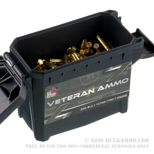 250 Rounds of .300 AAC Blackout Ammo by Veteran Ammo in Ammo Can - 147gr FMJ