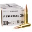 “Federal American Eagle 308?” you remarked. “What is that? Some kind of well-made yet affordably priced range and target ammo that was made in the USA?” This time your intuition is correct. These cartridges are loaded with 150 grain bullets, which are on the lighter side of average, and those bullets are full metal jackets: simplest design the 308 can have, and therefore economical enough for lots o’ shootin’. The FMJs are also outfitted with boat tails (i.e. tapered bases) which help them stir up less drag as they swim through the air – and maintain better balance while they’re at it. (G1 BC: 0.408)