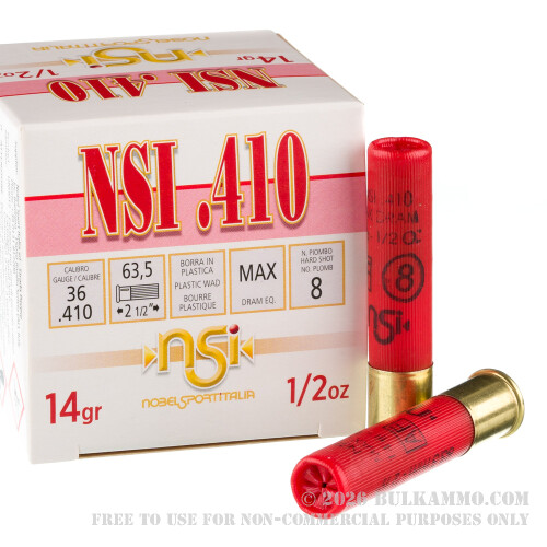 250 Rounds of .410 Ammo by NobelSport - 1/2 ounce #8 shot