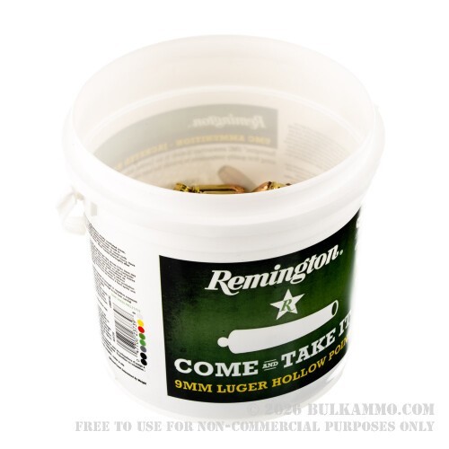 Yes – because the state is also home to Remington, which packages this UMC series 9mm jacketed hollow point ammunition in a convenient plastic bucket.
