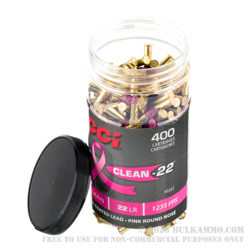 This round’s bullet is much more than just pink. As a polymer-coated lead round nose, it eliminates copper fouling and drastically reduces lead fouling. That means you can conserve your 22 rifle or pistol’s accuracy for longer in between cleanings. That also means you’ll inhale less nasty lead gas while you’re getting your plink on.