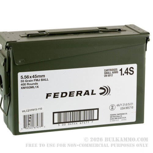 400 Rounds of 5.56x45 Ammo by Federal American Eagle in Ammo Can - 55gr FMJ
