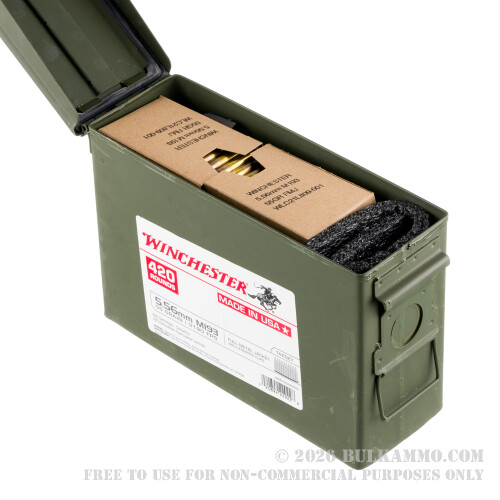 420 Rounds of 5.56x45 Ammo by Winchester USA in Ammo Can - 55gr FMJ M193 on Stripper Clips