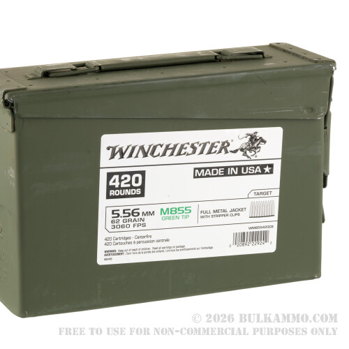 420 Rounds of 5.56x45 Ammo by Winchester in Ammo Can - 62gr FMJ M855