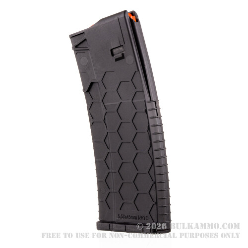 Right away, you can see how the Hexmag gets its name. Its distinctive Hextrue design is easy to hold onto, so if you’re shooting in the rain or while wearing gloves you won’t risk dropping your magazine like a huge dork. The Hexmag is made of a special fiber-reinforced polymer called PolyHex2. Sit on it, stand on it, let your dog chew on it if you like -- the Hexmag won’t come out such abuse any worse for wear, but your dog’s teeth might so please never do that last thing.