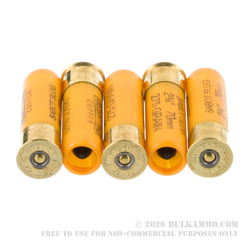 • Accuracy. With its high-quality sabot, balanced weight distribution, polymer tip and aerodynamic bullet-like profile, the slug is quite capable of printing 4” groups at 200 yards.