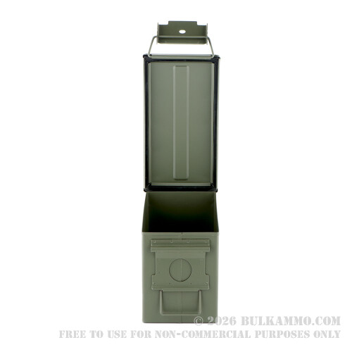 These M2A1 cans are NEW PRODUCTION and can be bought in different configurations ranging from a single can to twelve-can cartons (while supplies last). They’re made the same size and with the same steel box/lid, rubber seal, olive drab powder coating, and steel handles as mil-spec M2A1 cans, but they were manufactured in China to keep the price low.