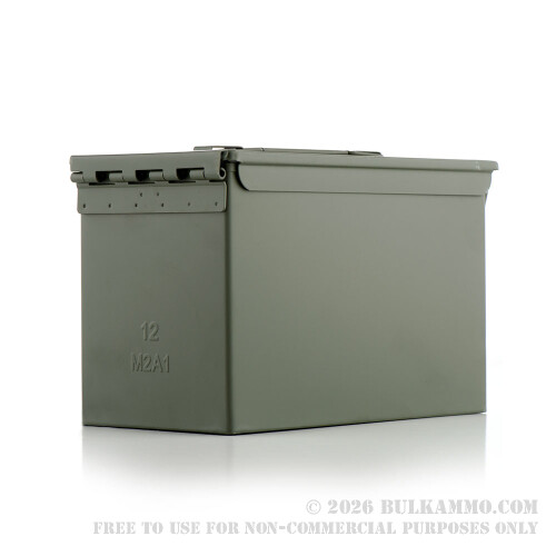 These M2A1 cans are NEW PRODUCTION and can be bought in different configurations ranging from a single can to twelve-can cartons (while supplies last). They’re made the same size and with the same steel box/lid, rubber seal, olive drab powder coating, and steel handles as mil-spec M2A1 cans, but they were manufactured in China to keep the price low.