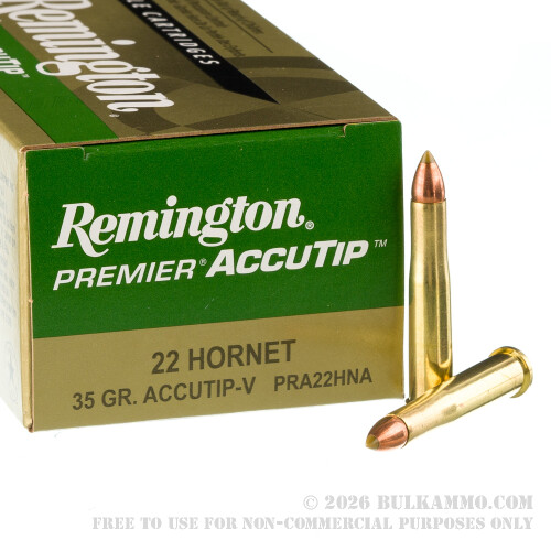 50 Rounds of .22 Hornet Ammo by Remington Premier AccuTip-V - 35gr AccuTip-V