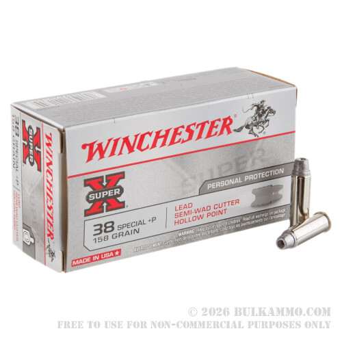 50 Rounds of .38 Spl Ammo by Winchester Super-X - +P 158gr Lead Wadcutter