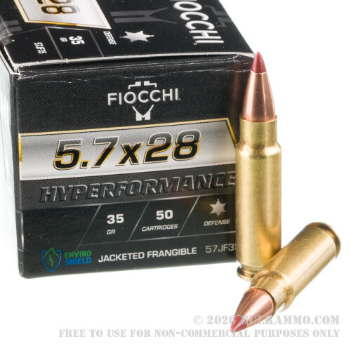 Got some very interesting 5.7x28mm NATO ammunition by Fiocchi for you! This cartridge’s projectile is perfect for shooting steel at close range. It poses a significantly lower chance of peppering you with shrapnel, which is always a welcome advantage when you’re working on your aim.