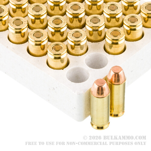 This round is for fine-tuning your aim with a 10mm pistol. Its 180 grain projectile is made without voids in its core nor deviations in its jacket’s concentricity so that you can enjoy landing bull after bull. Such a bullet won’t quickly foul a barrel or jam easily during feeding, and its broad meplat is especially suitable for work with a paper target.