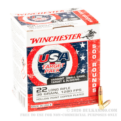 500 Rounds of .22 LR Ammo by Winchester USA Game & Target - 36gr CPHP