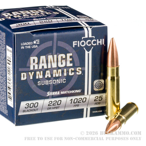 500 Rounds of .300 AAC Blackout Ammo by Fiocchi - 220gr HPBT MatchKing