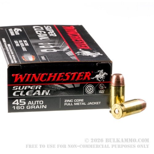 500 Rounds of .45 ACP Ammo by Winchester Super Clean - 160gr Lead-Free FMJ