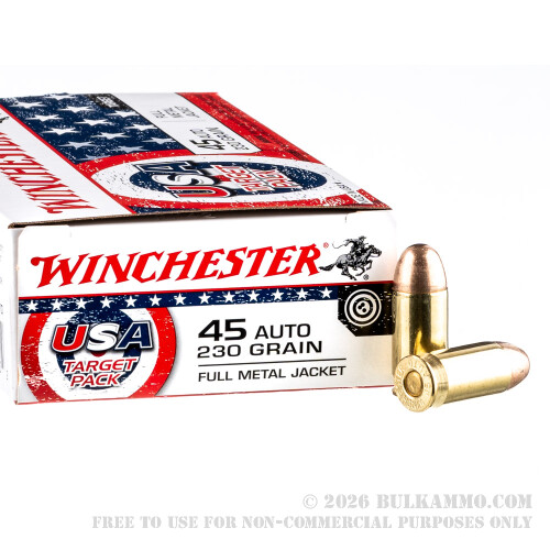 500 Rounds of .45 ACP Ammo by Winchester USA Target Pack - 230gr FMJ
