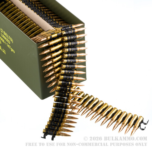 These are brass-cased rounds, and they’re not reloads. You can count on them to reliably weave in and out of a semi-auto’s chamber, and their non-corrosive primers won’t deposit harmful residues inside of your rifle. These are also linked cartridges, making them optimal for a firearm like the M240-series machine gun; but if you want to load them in magazines, you’ll be able to free them from their links with relatively little effort.