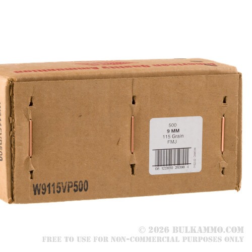 500 Rounds of 9mm Ammo by American Quality Ammunition - 115gr FMJ