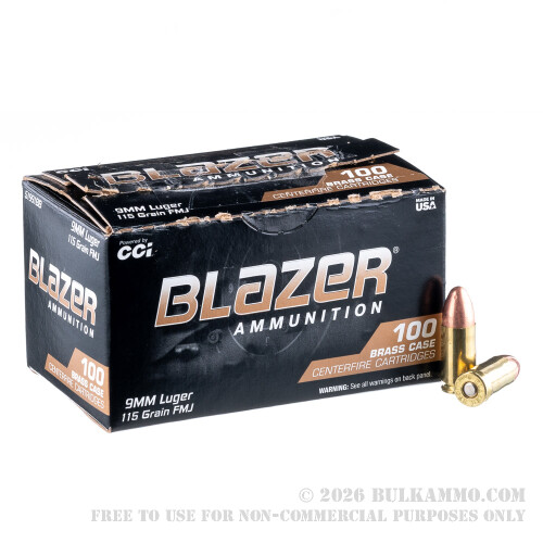 500 Rounds of 9mm Ammo by Blazer Brass - 115gr FMJ