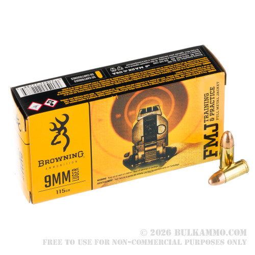 500 Rounds of 9mm Ammo by Browning - 115gr FMJ