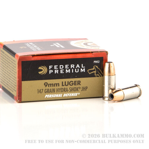500 Rounds of 9mm Ammo by Federal Personal Defense - 147gr Hydra-Shok JHP