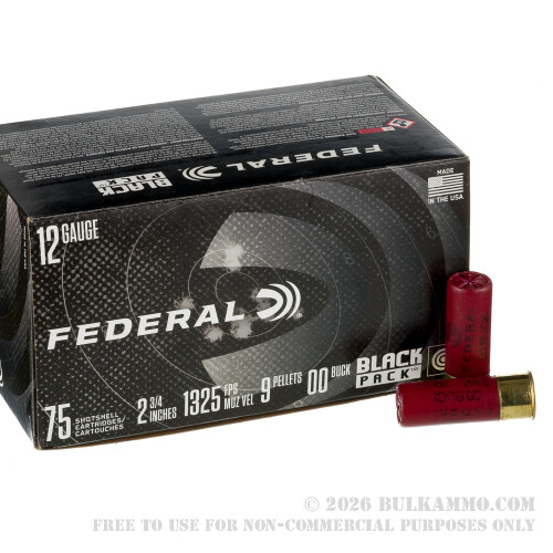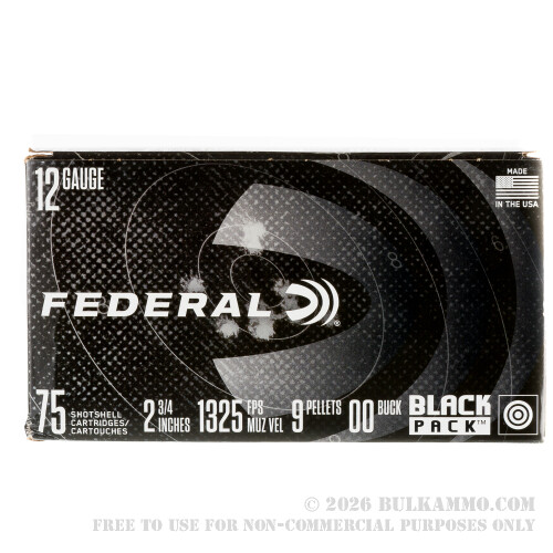 75 Rounds of 12ga Ammo by Federal Black Pack - 9 pellet 00 buckshot
