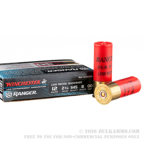 5 Rounds of 12ga Ammo by Winchester Ranger - 00 Buck 8 Pellets Low Recoil