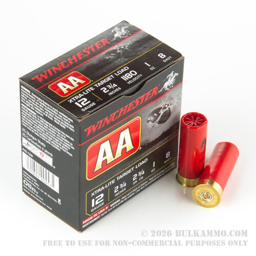 Winchester's Xtra-Lite 12 gauge loads offer excellent quality at a reasonable price by way of choice components and exceptional craftsmanship. Each of these rounds utilizes a 2-3/4 inch moisture-repelling hull with smooth walls for easy insertion and fast reloads; this hull length is compatible with the widest range of shotguns but also matches the chamber length of top tier sporting pieces. Inside the round is an ounce of #8 shot which is a standard load for clay pigeons as well as for pheasants, doves, and crows at medium range.
