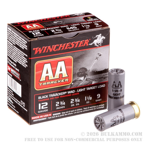 25 Rounds of 12ga Ammo by Winchester TrAAcker Black - 2-3/4" 1-1/8 ounce #9 shot