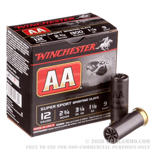 Skeet and trap competitors will appreciate these 12 gauge shells from Winchester for both practice and club meets! Each of these rounds contains 1-1/8 ounces of #9 size shot which is often chosen over large sizes for its higher quantity of pellets; this contributes to greater pattern density and cleaner breaks for close range fliers. The shot pellets are protected from flat-spotting by the forward cupping walls of the AA wad so that they travel farther, stick together more tightly, and carry greater clay-shattering momentum.