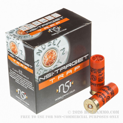 This 12 Gauge shotshell from Nobel Sport Italia’s NSI•Target Trap line of ammunition is loaded with 1 ⅛ ounces of #7.5 lead shot. Also appropriately known as “dove shot,” these .095” pellets are perfect for just that as well as woodcock, quail, grouse, partridge, and squirrel. (Everything is good for squirrel, it seems, short of howitzer rounds.) Where this shell will really shine is on the range, as its shot pellets’ spacing and range make them remarkably conducive to busting even the swiftest flying clays. The shell’s 1,200 fps muzzle velocity is considered by many seasoned experts to be ideal for skeet, trap, and sporting clays, and its even spreading wad assures the consistent patterns that you can count on during competition.