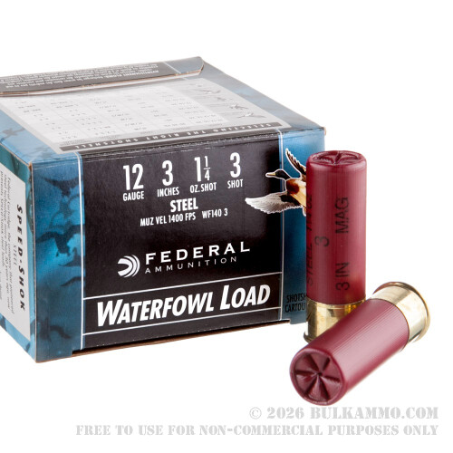 25 Rounds of 12ga Ammo by Federal Speed Shok - 1 1/4 ounce #3 Shot (Steel)
