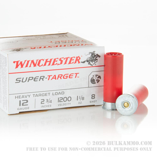 These 12 gauge rounds from Winchester's Super Target line carry a heavy load for remarkable skeet and trap use at any distance! Each shotshell is constructed using top grade components including aluminum-plated steel heads which load and eject smoothly as well as moisture-resistant hulls with a tight star crimp. Inside the shell is 1-1/8 ounces of #8 size shot which has been chilled and hardened to help the pellets stay round throughout barrel travel.