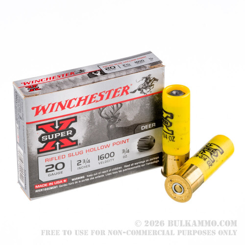 This is a very nice hunting or self-defense shotgun load that offers a lot for the relatively mild 20 gauge platform. The 3/4"ounce rifled slug that is loaded into this controlled flight setup offers moderate range use for a shell that can easily take a big game animal at 30-70 yards with a well-placed shot and will work well for those who need longer range or heavy stopping power in a personal defense or home protection setting. The powerful, heavy rifled slug projectile is adequate for animals up to about 500 lbs. and even beyond (depending on circumstances). The high velocity and the well-built cartridge ensures good trajectory and proper accuracy out to moderate ranges as discussed already.