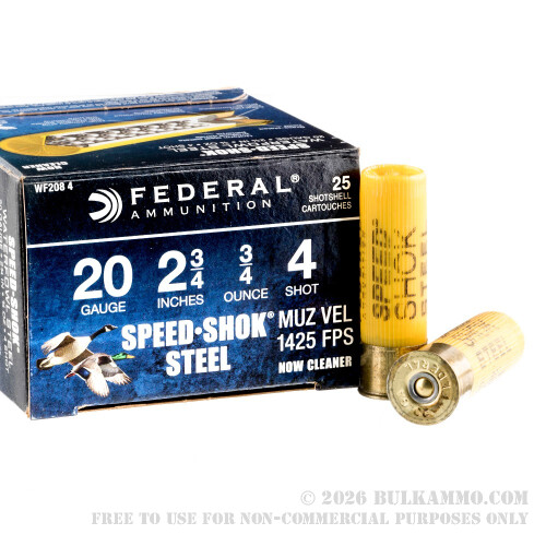 Waterfowl hunting requires quick reflexes, and the Federal Speed-Shok 2 ¾ #4 birdshot will give you that decisive edge on any hunt.
