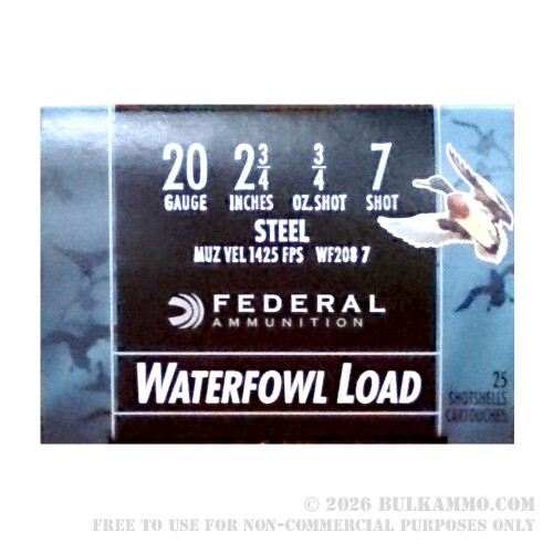 250 Rounds of 20ga Ammo by Federal Speed-Shok - 3/4 ounce #7 Shot (Steel) Waterfowl Load