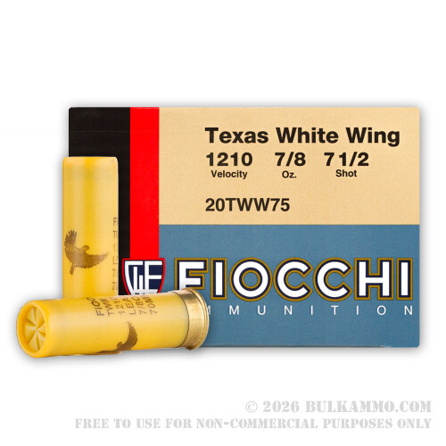 250 Rounds of 20 Gauge 2-3/4" Ammo by Fiocchi Texas Dove Load - 7/8 ounce #7 1/2 shot