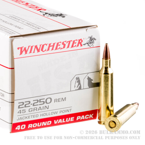 When you need a good value cartridge for your .22-250 rifle, the Winchester white box is a classic choice. The reputation it has as a general range shooting round for paper targets and for some loads, as a hunting cartridge is excellent. The pricing is always reasonable on the Winchester White Box and the accuracy and reliability is top notch given the price point.