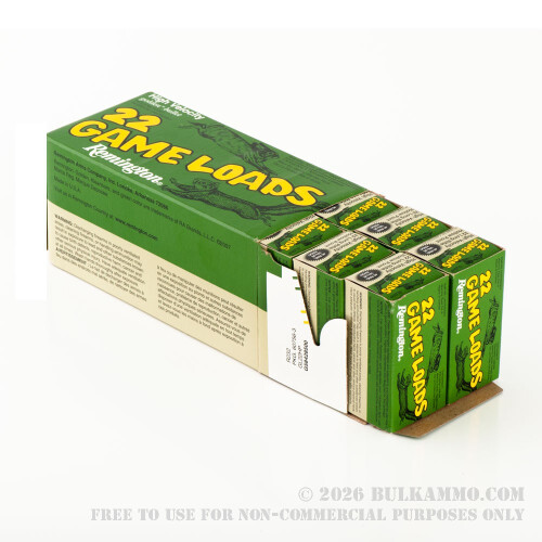 36 grains of golden shaded copper plating offer a unique cartridge look that is unmistakable in memories everywhere. The Remington Brand being strengthened through subliminal coloration. The same brand being strengthened through absolute performance. The round is capable of shooting any small game and dispatching it easily under the right conditions. This is a case lot of 4000 rounds in the form of 10, 400 round Value packs.