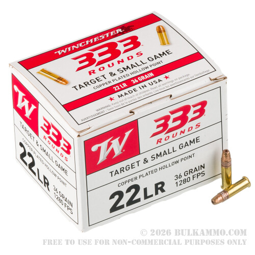 Winchester's bulk-pack .22 LR 36 grain copper-plated hollow point ammo is a great value for high-volume plinking and target practice as well as for varmint and small game hunting. This product is designed to be an affordable and reliable choice for shooters who know to trust the quality and reputation of Winchester ammunition.