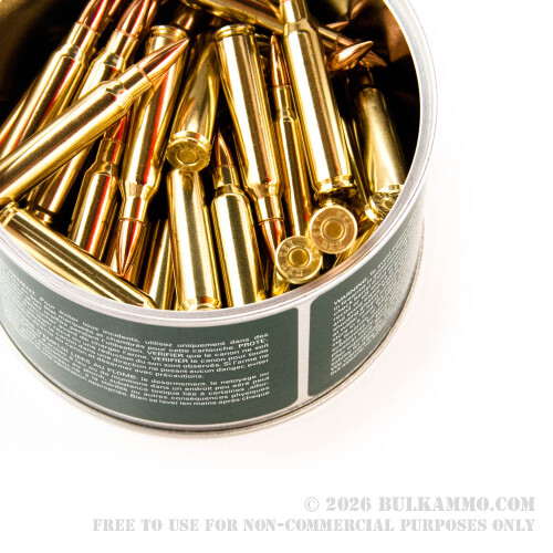 This .223 ammo is loaded with bullets with a the "Boat Tail" design, which allows for efficient bullet stabilization as it leaves the barrel. These FMJBT bullets are loaded into new, reloadable, Boxer primed, heavy wall, high polished, yellow brass cases. These have an extremely quick muzzle velocity of 3,240-feet per second, and their muzzle energy of 1,273-foot pounds hits with authority. Being that these rounds move extremely fast and hit very hard, they're perfect for the ever-changing tactical and hunting environments. These 1000 cartridges are readily packed into their hermetically sealed cans, so they can go anywhere you want to shoot your firearms. The Canned Heat line is sealed up hermetically with desiccant packs inside to prevent damage from wetness on the inside of the cans. These cans are packed tight and efficiently, so you can stack a bunch of cans of this ammo with your gear. Pack your armory to the roof with Fiocchi's Canned Heat .223 Remington now.