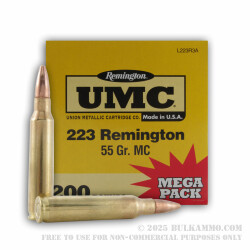 A good general plinking round in a convenient pack size, offering 200 rounds of ammunition from a known producer with a great brand history and a from a no-nonsense line of the company. The Remington UMC ammunition for the .223 Remington in 55 grain projectile weight is a good all-around shooting cartridge that is a low recoil, high fun round that has a place in every .223 shooter’s stash.