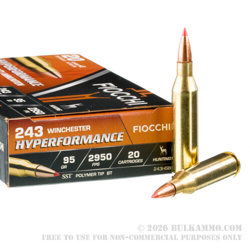A great whitetail cartridge, some may consider the .243 just about on the cusp of true big game performance, but this load proves that the caliber is right for the task at hand. The SST (Super Shock Tip) projectile by Hornady is a perfect pairing for the caliber and the other quality components that Fiocchi offers for the load. The Hornady SST is a bullet that offered a number of significant improvements over other projectiles when it debuted in 1998; and is still a very high end choice. Hence, the reason Fiocchi chose it when they have plenty of options to choose from, including their own projectile.