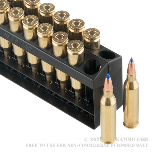 The .243 Winchester is one of the most popular hunting rounds ever, but experts usually regard bullets lighter than 90 grains as unsuitable for medium sized game such as deer. All that changes with the Barnes VOR-TX ammo, which utilizes an all copper bullet with a polymer tip that guarantees instant expansion. The all copper construction gives maximum weight retention, putting these soft shooting 80 grain .243 Winchester rounds squarely into “deer killing” territory.