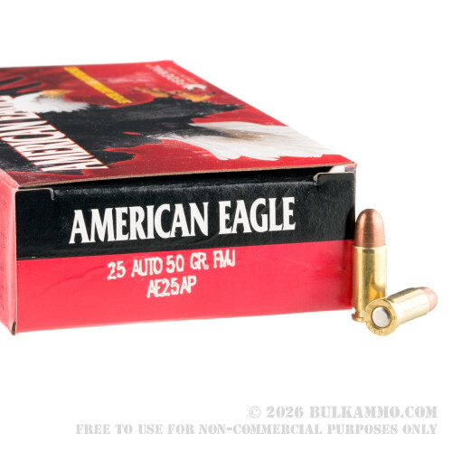 For the shooters of .25 ACP it’s a great choice to shoot the clean, reliable and consistent rounds offered by the American Eagle line of ammunition – a Federal Ammunition brand line. This ammo just does its job without a bunch of fanfare or difficulty. Yes this is not the hottest round in the world, but it’s also a .25ACP, which does not have the reputation as being one of the hottest loads in the world. What this is, is a good basic ammunition for the .25 ACP, a perfectly respectable backup weapon caliber and a very tame, mildly recoiling cartridge that can be counted on to be reliable in ignition, functionality and extraction.