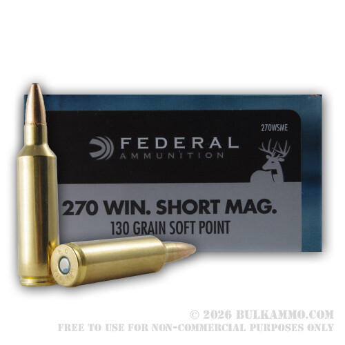 20 Rounds of .270 Win Short Mag Ammo by Federal - 130gr SP
