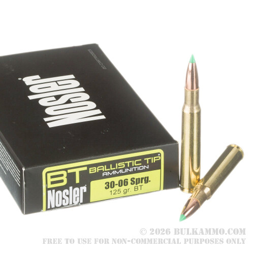 20 Rounds of 30-06 Springfield Ammo by Nosler Ammunition - 125gr Nosler Ballistic Tip
