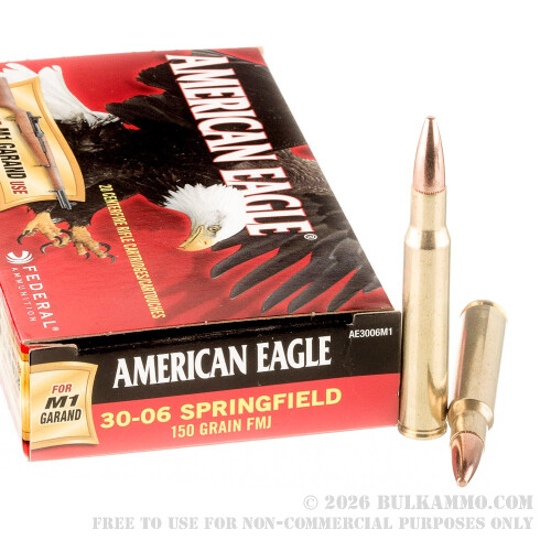 The 150 grain bullet hits the sweet spot for the M1 Garand and the American Eagle ammunition that is produced for this use case offers thick, premium brass that can be reloaded multiple times and is easily done so, thanks to the Boxer priming and the clean powder burn.